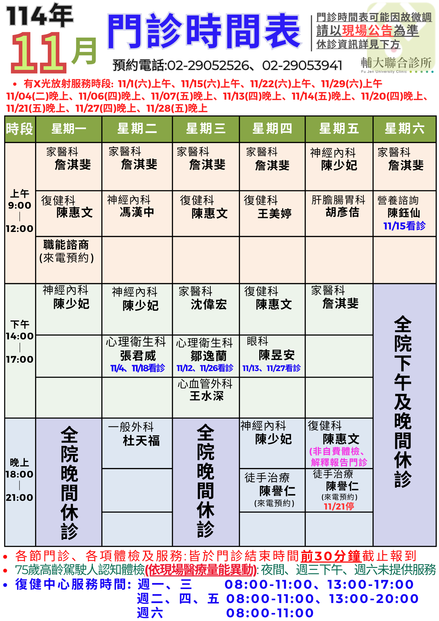 114年11月門診表