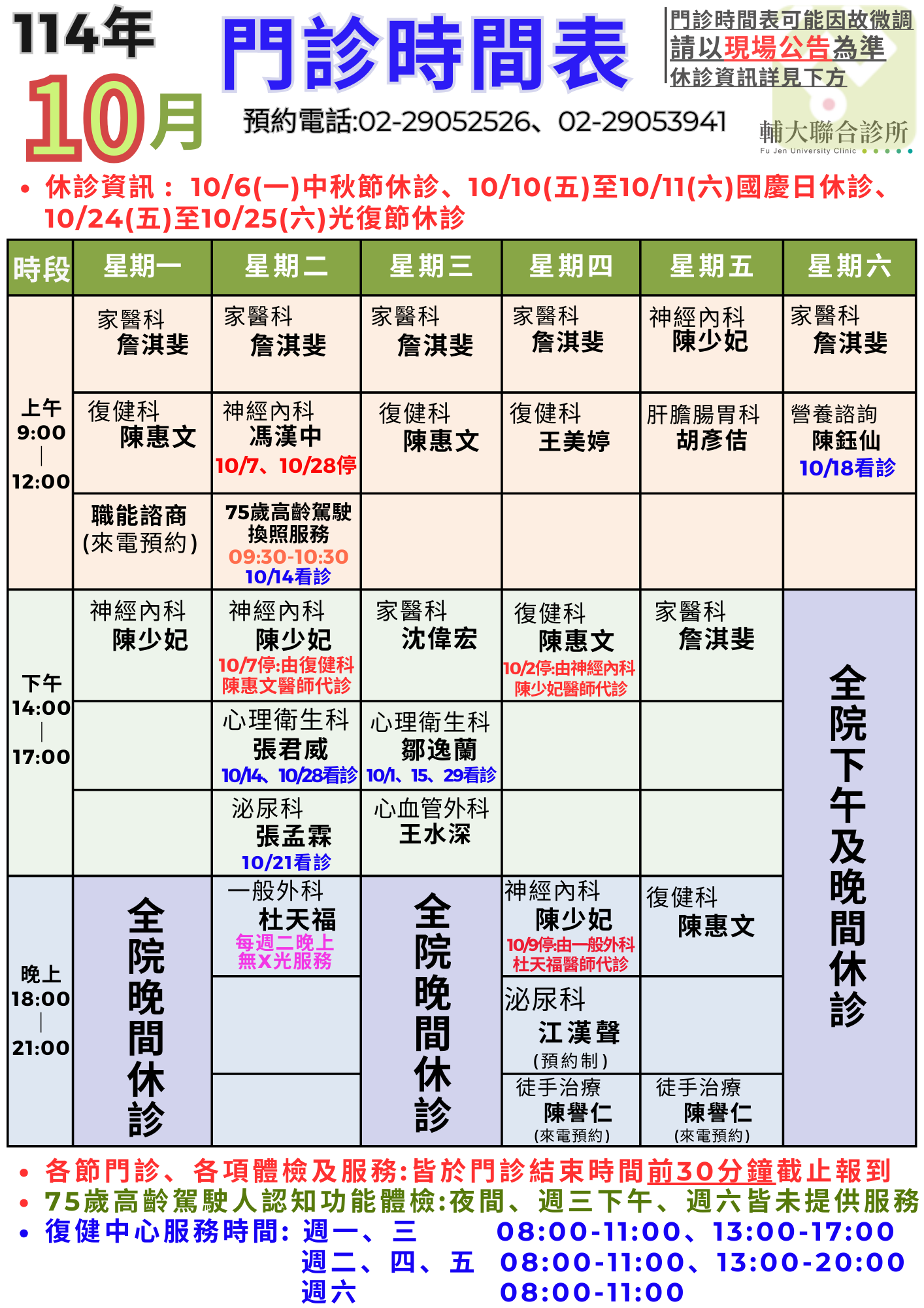 地址:242 新北市新莊區中正路510號(輔仁大學醫學院綜合大樓1F)