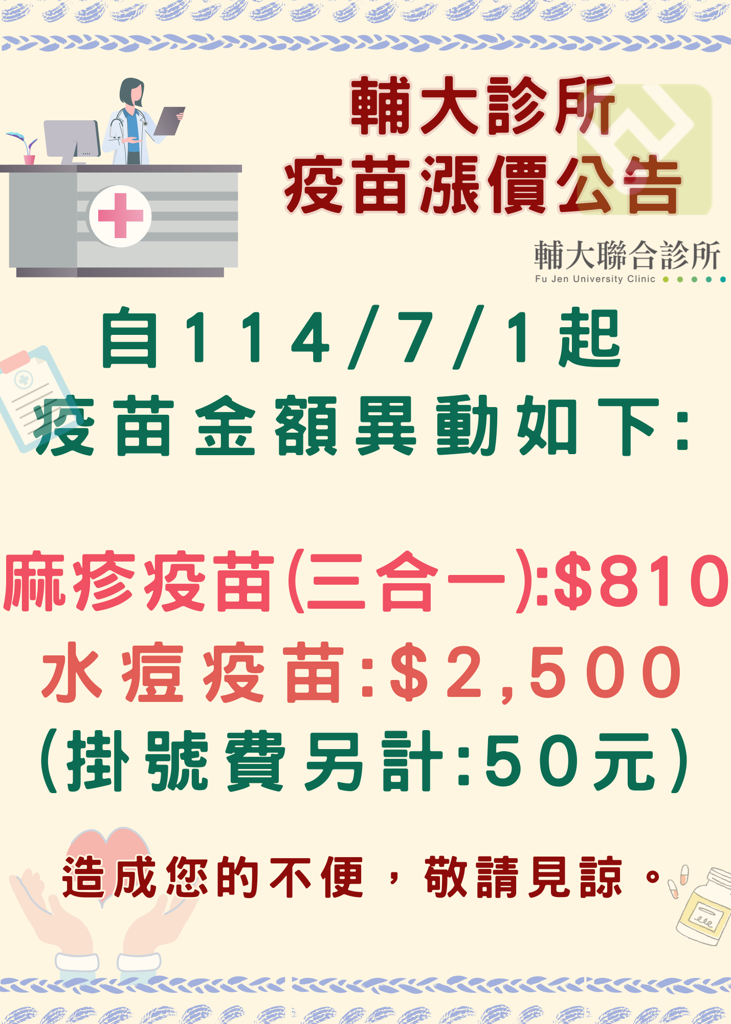 麻疹疫苗、水痘疫苗漲價公告
