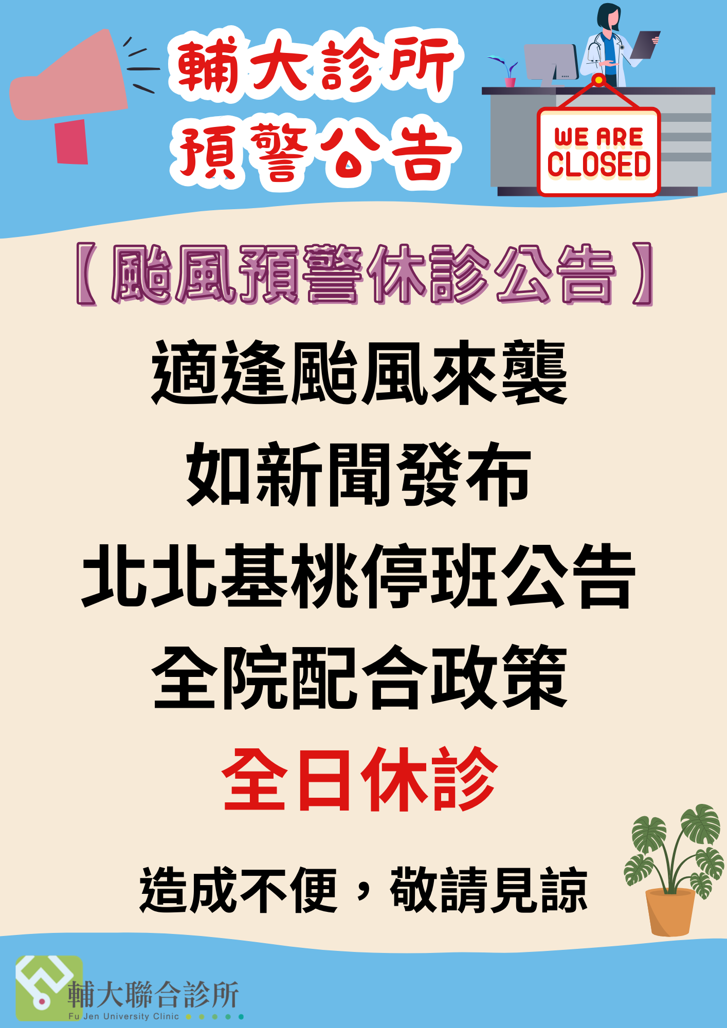 【颱風預警休診公告】